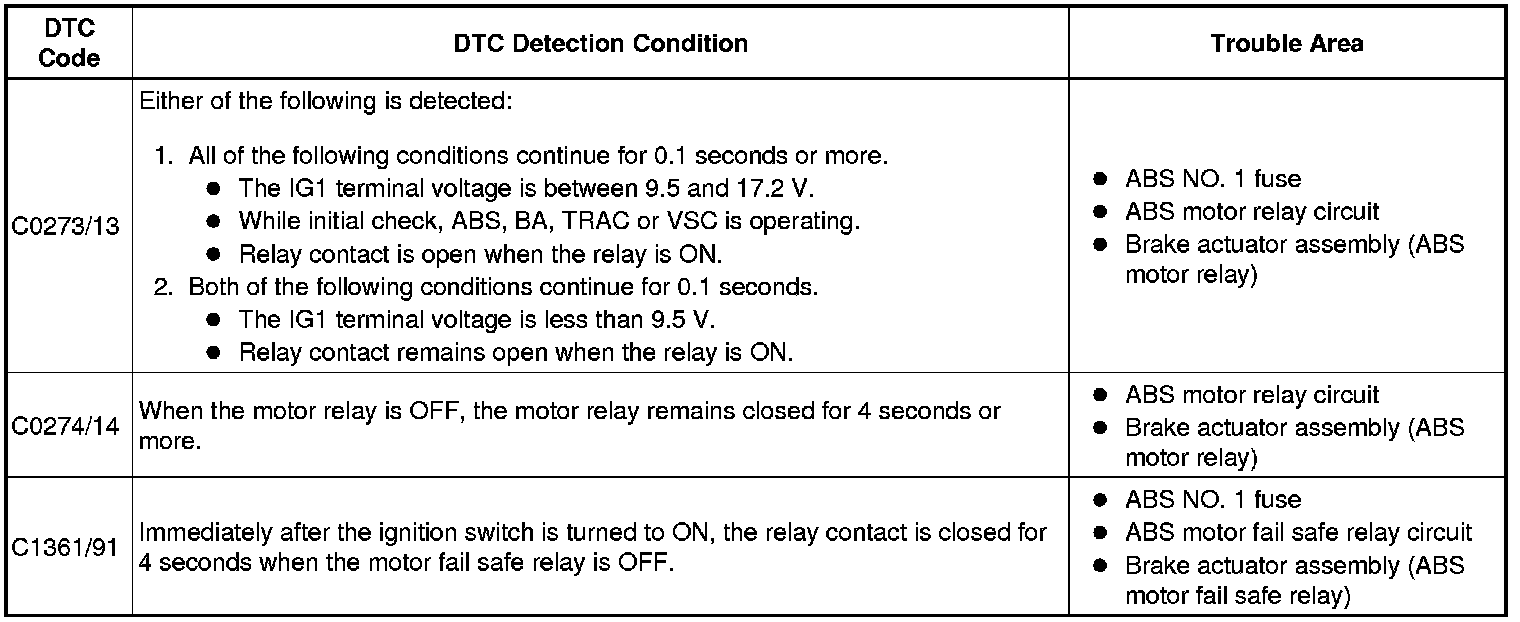 BRAKE CONTROL / DYNAMIC CONTROL SYSTEMS: VEHICLE STABILITY CONTROL SYSTEM: C0273/13,C0274/14,C1361/91: Open in ABS Motor Relay Circuit