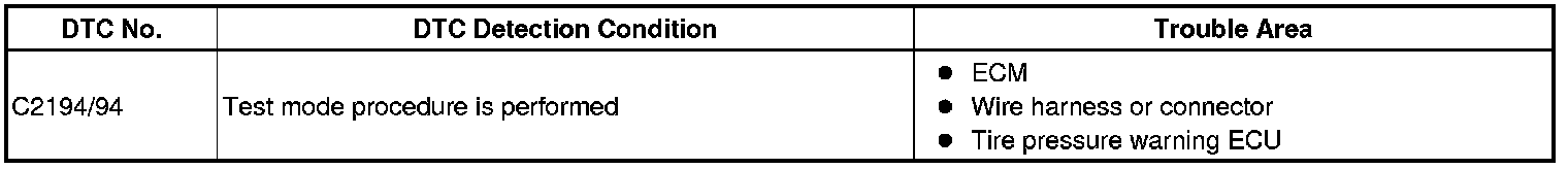 TIRE PRESSURE MONITORING: TIRE PRESSURE WARNING SYSTEM: C2194/94: Engine Speed Signal Error (Test Mode DTC)