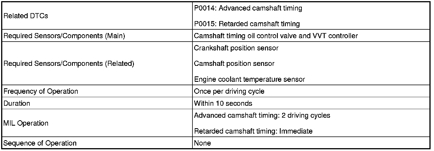 - DTC P0014 (Advanced Cam Timing) is subject to 2 trip detection logic.