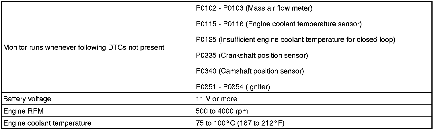 - The engine is warm (the engine coolant temperature is 75°C [167°F] or more).