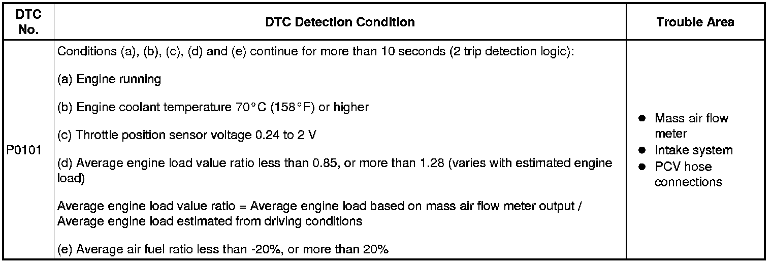DTC P0101 - Mass Air Flow Circuit Range / Performance Problem