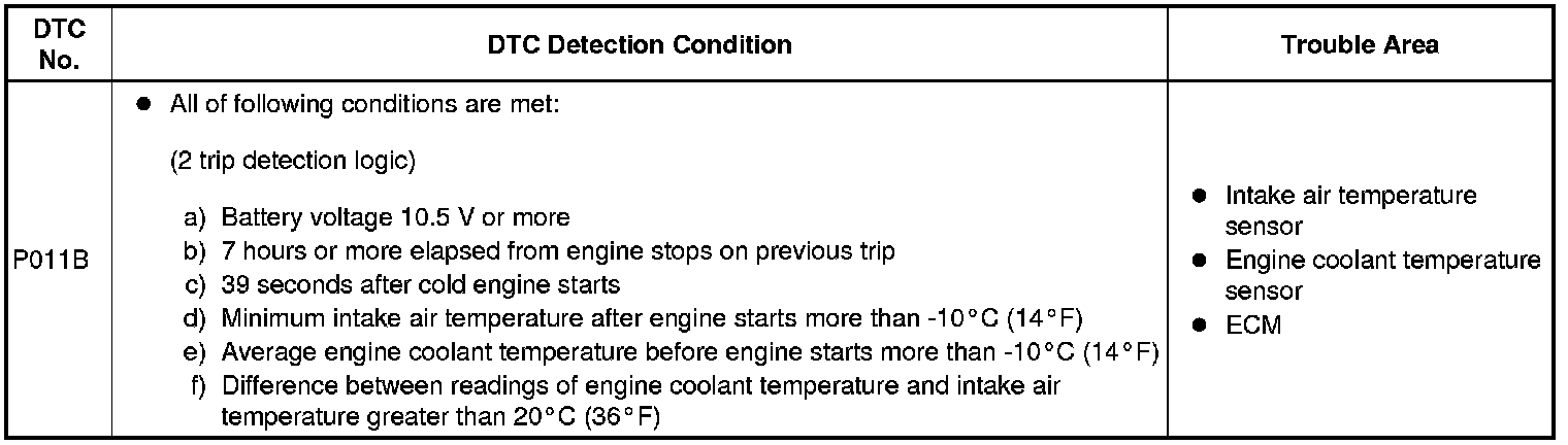 DTC P011B - Engine Coolant Temperature / Intake Air Temperature Correlation