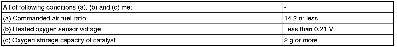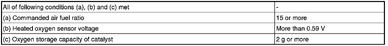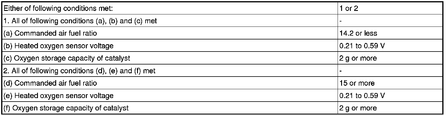 If the heated oxygen sensor has an open or short, or the voltage output of the sensor noticeably decreases, the oxygen storage capacity indicates an extraordinarily high value. Even if the ECM attempts to continue regulating the air fuel ratio to become rich or lean, the heated oxygen sensor output does not change.