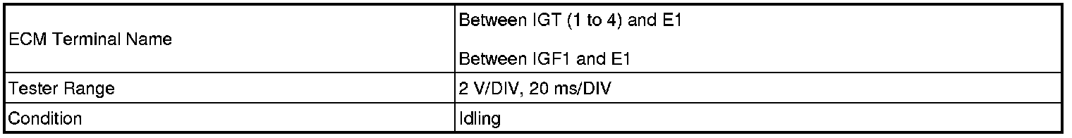 - While cranking or idling the engine, check the waveform between terminals IGT (1 to 4) and E1, and IGF1 and E1 of the ECM connector.
