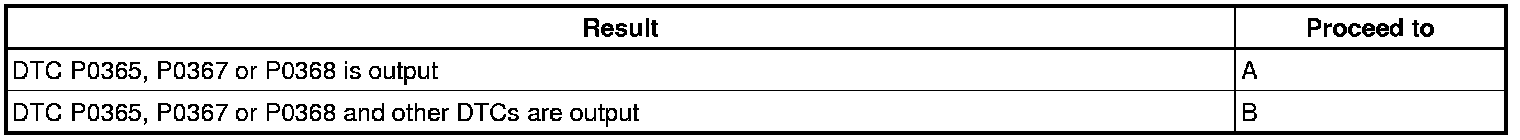 HINT: If any DTCs other than P0365, P0367 or P0368 are output, troubleshoot those DTCs first.