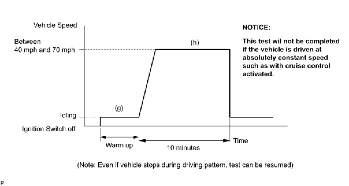 - (h) Drive the vehicle at between 40 mph and 70 mph (64 km/h and 113 km/h) for at least 10 minutes.