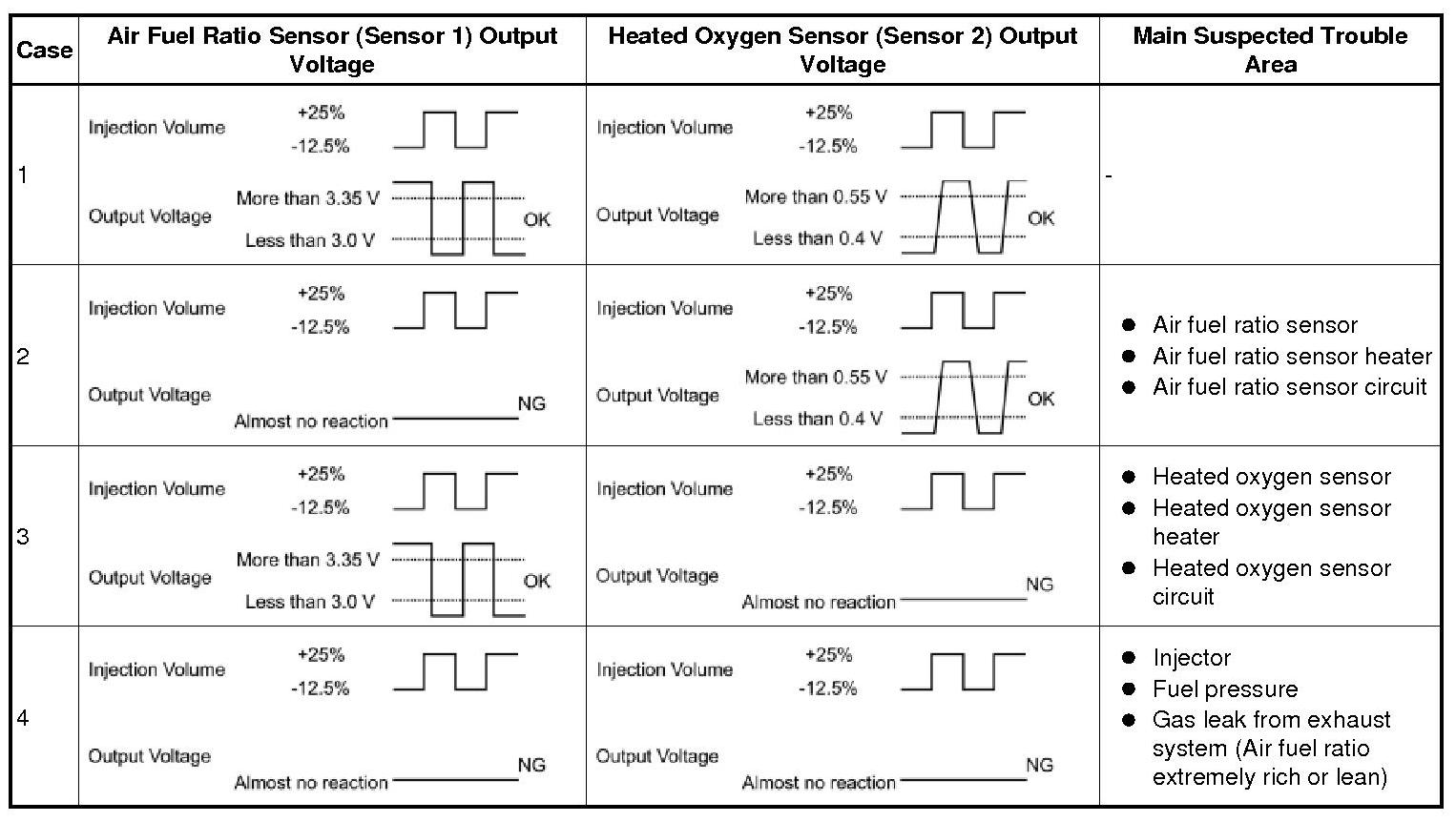 - Each sensor reacts in accordance with increases and decreases in the fuel injection volume.