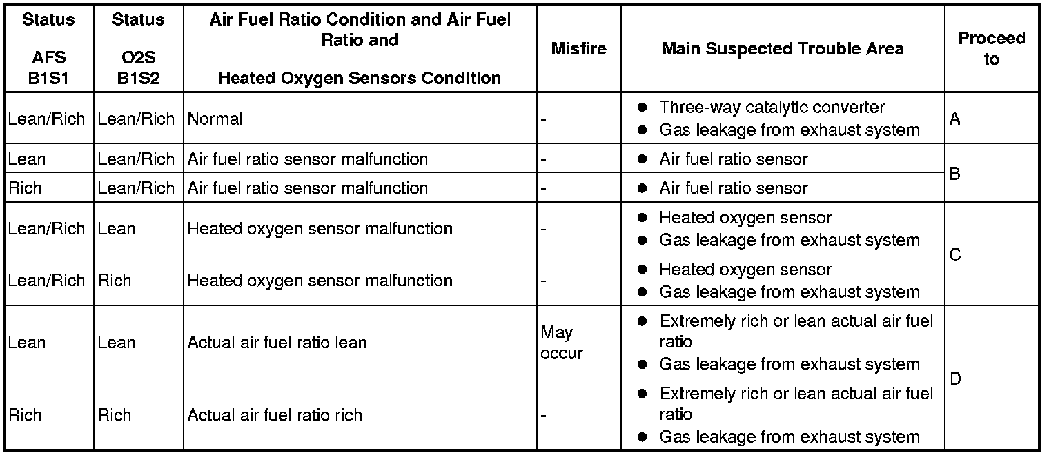 D -- CHECK ENGINE TO DETERMINE CAUSE OF EXTREMELY RICH OR LEAN ACTUAL AIR FUEL RATIO, AND GO TO STEP 3