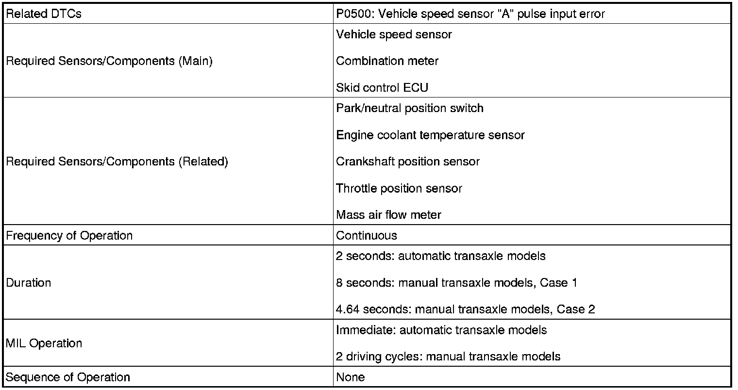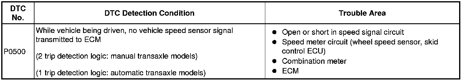 2ZR-FE ENGINE CONTROL: SFI SYSTEM: P0500: Vehicle Speed Sensor "A"