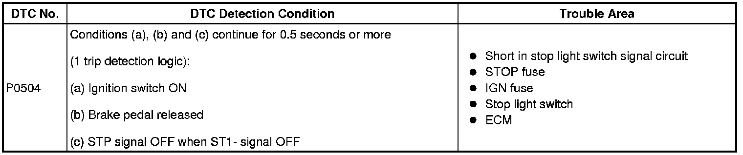 DTC P0504 - Brake Switch "A" / "B" Correlation