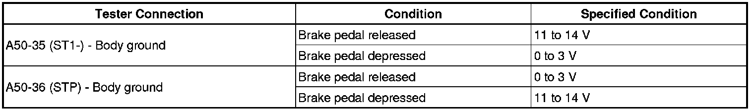HINT: The normal conditions are as shown in the table below. The signals can be read using the Techstream.