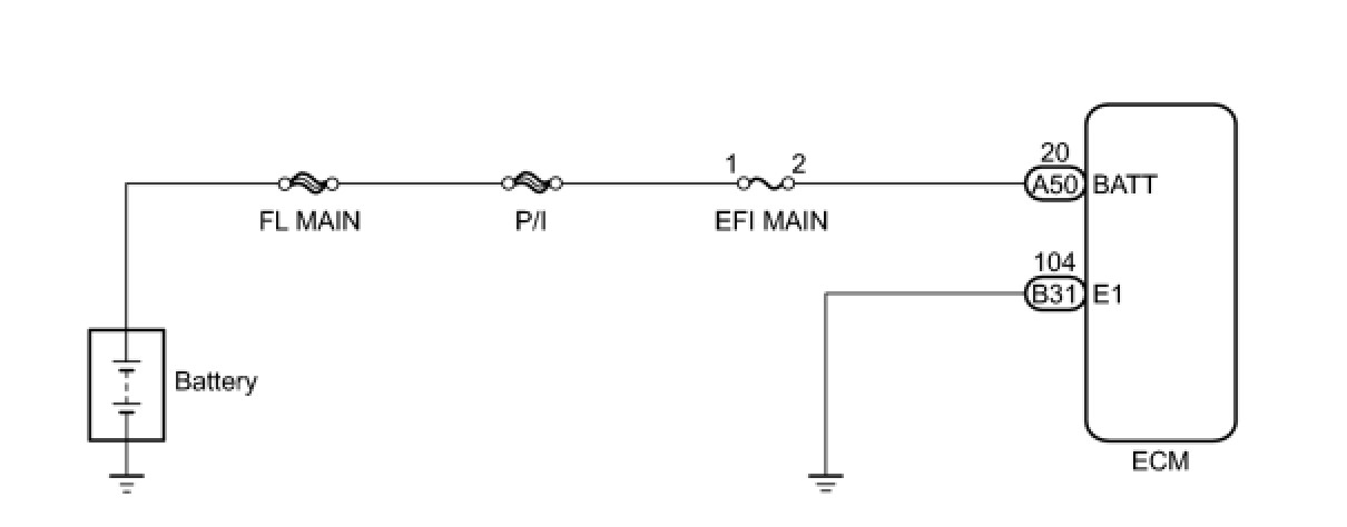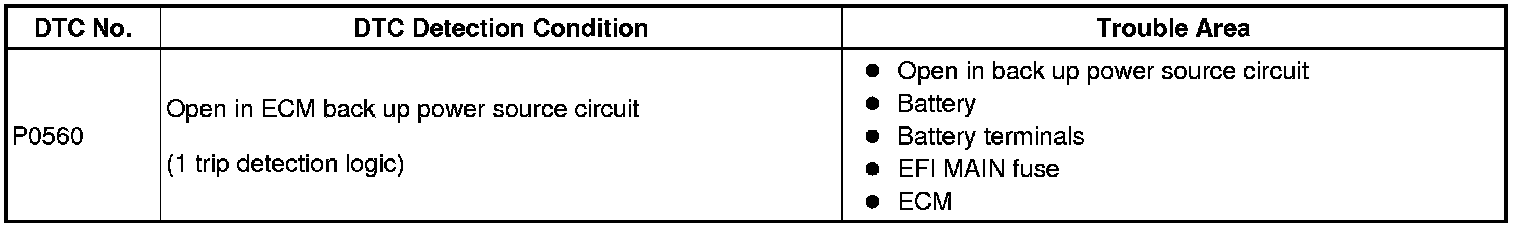 The battery supplies electricity to the ECM even when the ignition switch is off. This power allows the ECM to store data such as DTC history, freeze frame data and fuel trim values. If the battery voltage falls below a minimum level, the memory is cleared and the ECM determines that there is a malfunction in the power supply circuit. The next time the engine is started, the ECM illuminates the MIL and sets the DTC.