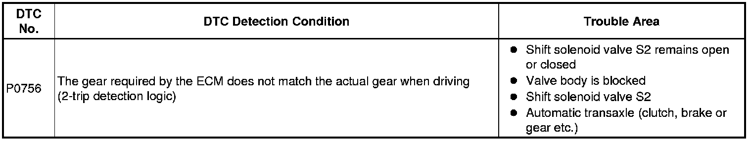 U341E AUTOMATIC TRANSMISSION / TRANSAXLE: AUTOMATIC TRANSAXLE SYSTEM: P0756: Shift Solenoid "B" Performance (Shift Solenoid Valve S2)