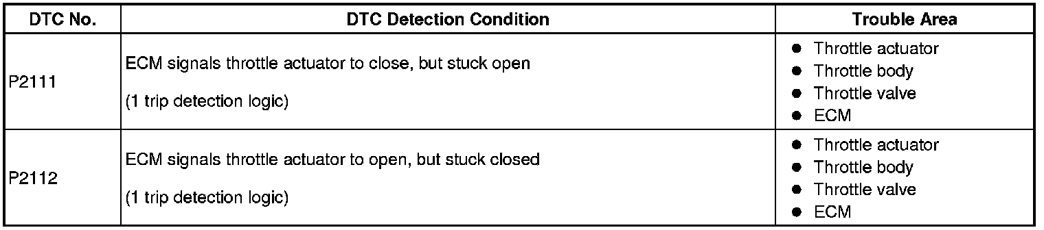 2ZR-FE ENGINE CONTROL: SFI SYSTEM: P2111,P2112: Throttle Actuator Control System - Stuck Open
