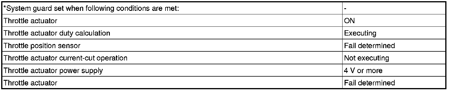 When either of these DTCs, as well as other DTCs relating to electronic throttle control system malfunctions, is set, the ECM enters fail-safe mode. During fail-safe mode, the ECM cuts the current to the throttle actuator, and the throttle valve is returned to a 6° throttle angle by the return spring. The ECM then adjusts the engine output by controlling the fuel injection (intermittent fuel-cut) and ignition timing, in accordance with the accelerator pedal opening angle, to allow the vehicle to continue running at a minimal speed. If the accelerator pedal is depressed gently, the vehicle can be driven slowly.