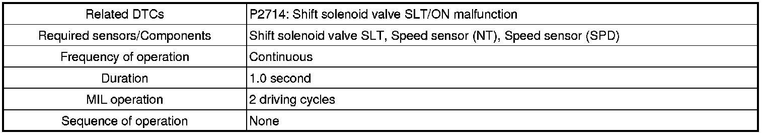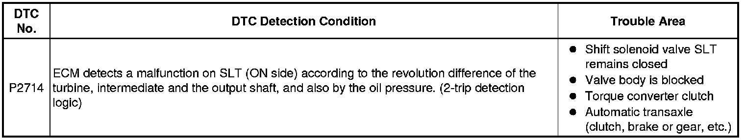 U341E AUTOMATIC TRANSMISSION / TRANSAXLE: AUTOMATIC TRANSAXLE SYSTEM: P2714: Pressure Control Solenoid "D" Performance (Shift Solenoid Valve SLT)