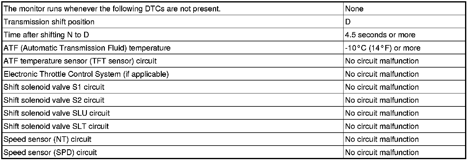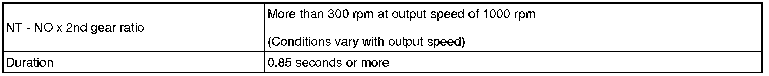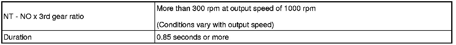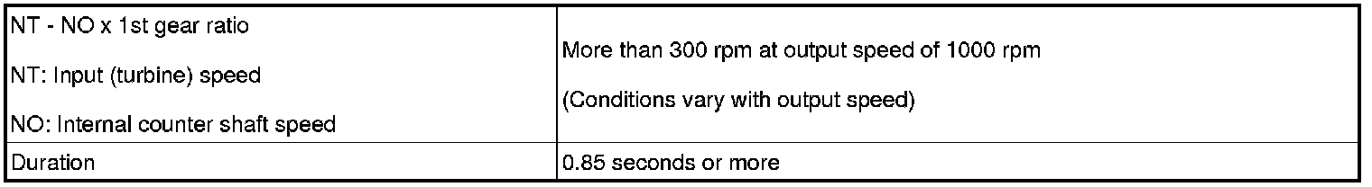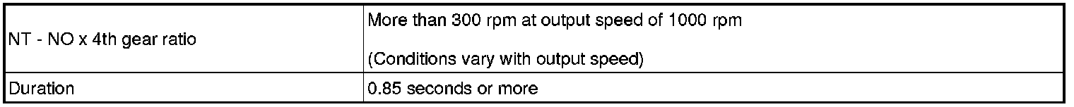 In any forward position, when the difference between the revolutions of the turbine, Intermediate and output shaft exceeds the specified value (varies with Intermediate, output speed) determined by the ECM, the ECM illuminates the MIL and store the DTC.
