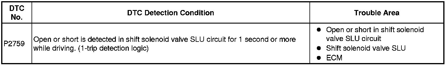 U341E AUTOMATIC TRANSMISSION / TRANSAXLE: AUTOMATIC TRANSAXLE SYSTEM: P2759: Torque Converter Clutch Pressure Control Solenoid Control Circuit Electrical (Shift Solenoid Valve SLU)