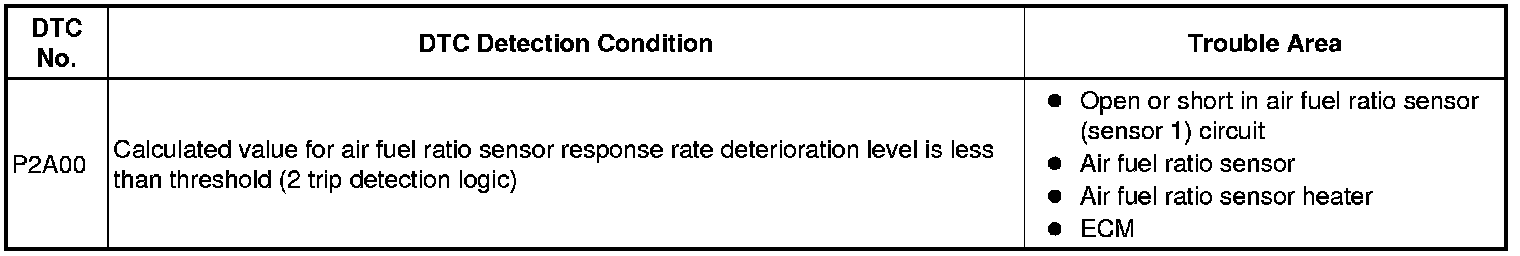 - DTC P2A00 may be also set, when the air fuel ratio is stuck rich or lean.