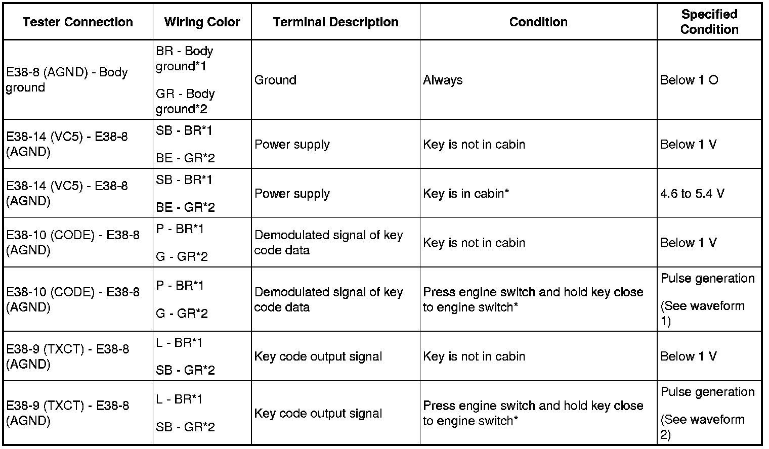 If the result is not as specified, the certification ECU (smart key ECU assembly) may have a malfunction.