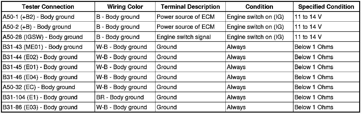 *2: Voltage is output for 0.3 seconds when the engine is cranking to start. Disconnect the B31 connector from the ECM and starter cut relay before measuring the voltage.