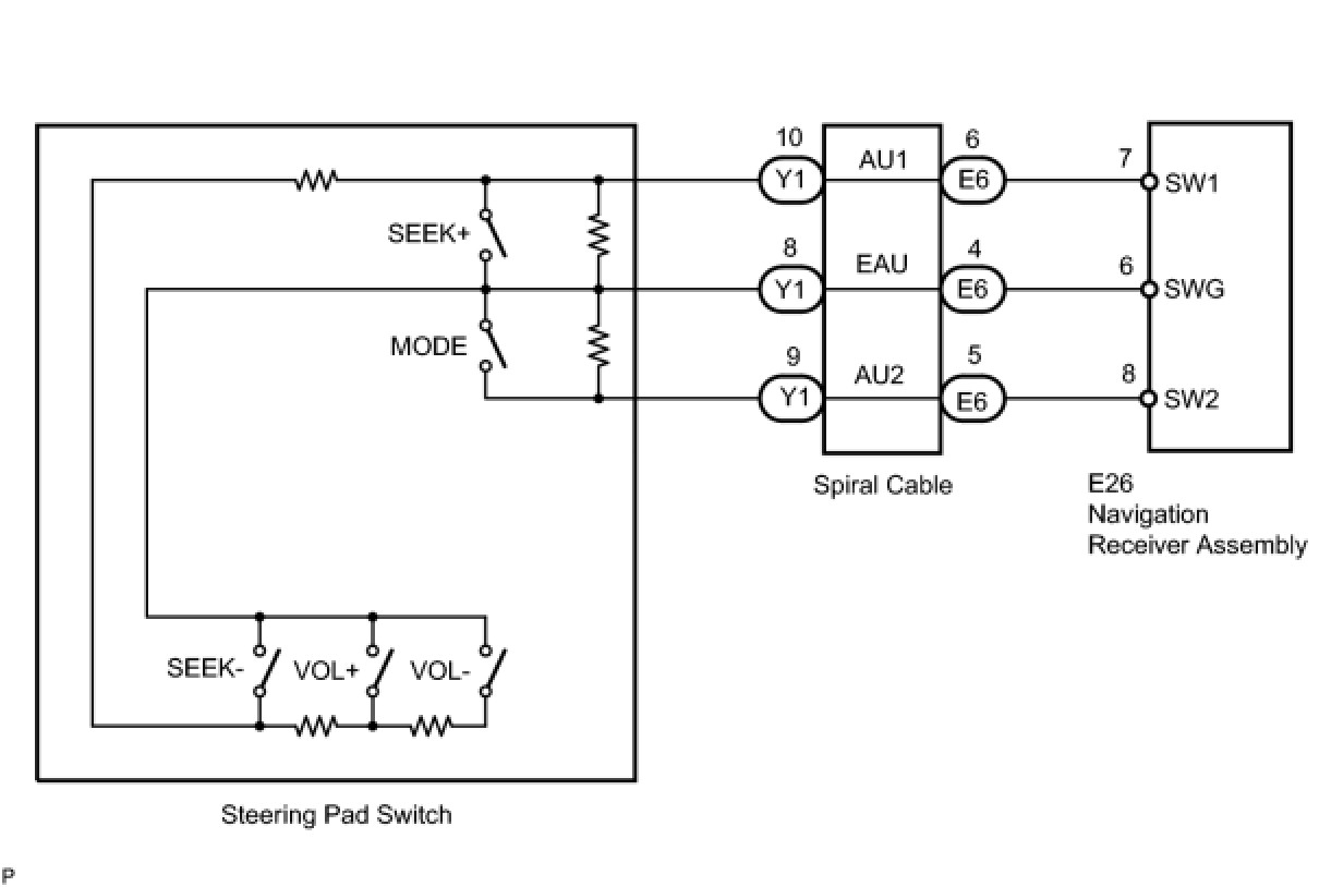 This circuit sends an operation signal from the steering pad switch to the navigation receiver assembly.