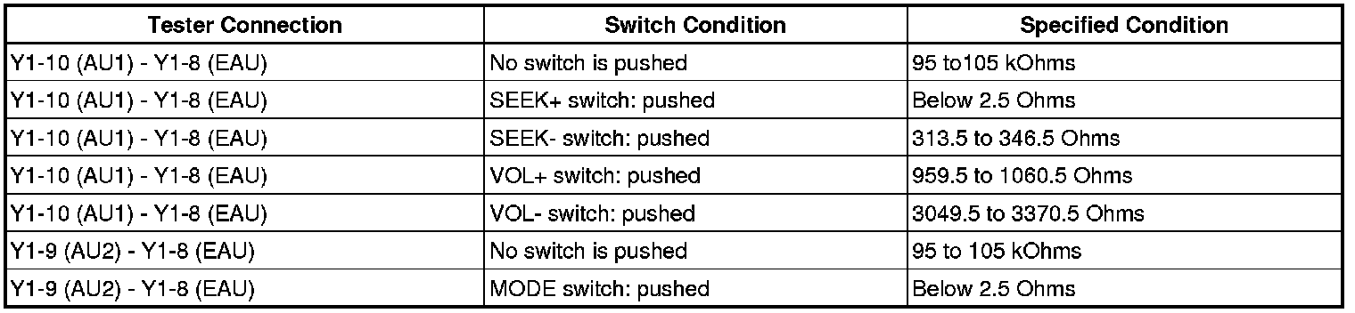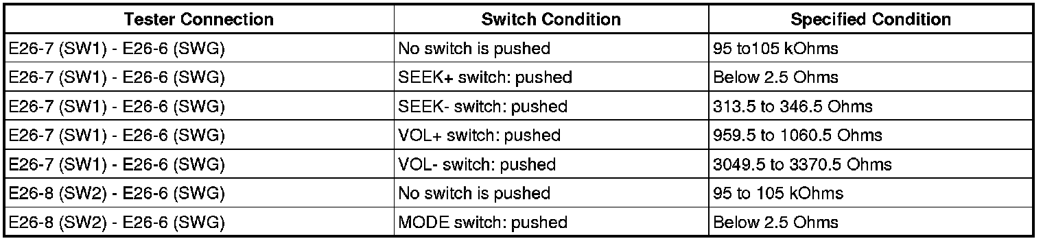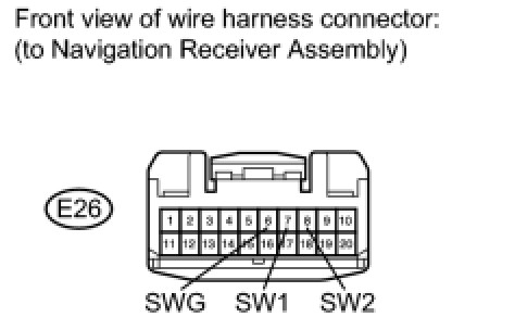 If there is a short in the circuit, the resulting condition is the same as that when the switch were continuously pressed. Therefore, the navigation receiver assembly cannot be operated using the steering pad switch, and the navigation receiver assembly itself cannot function.