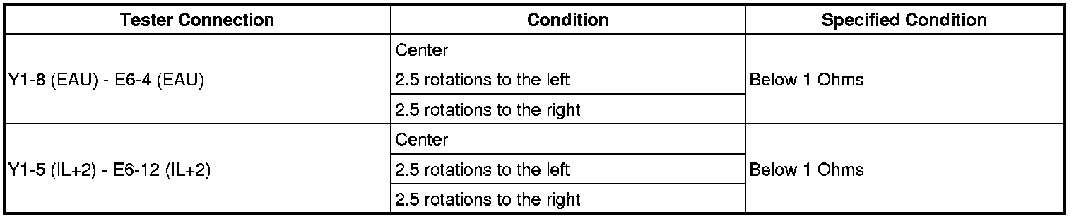 (b) Connect a battery positive (+) lead to terminal IL+2 and a negative (-) lead to terminal EAU of the steering pad switch assembly connector.