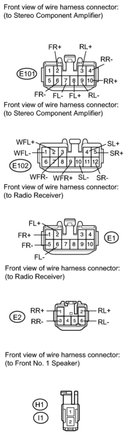 (a) Disconnect the connectors shown in the illustration from the stereo component amplifier or radio receiver and speakers.