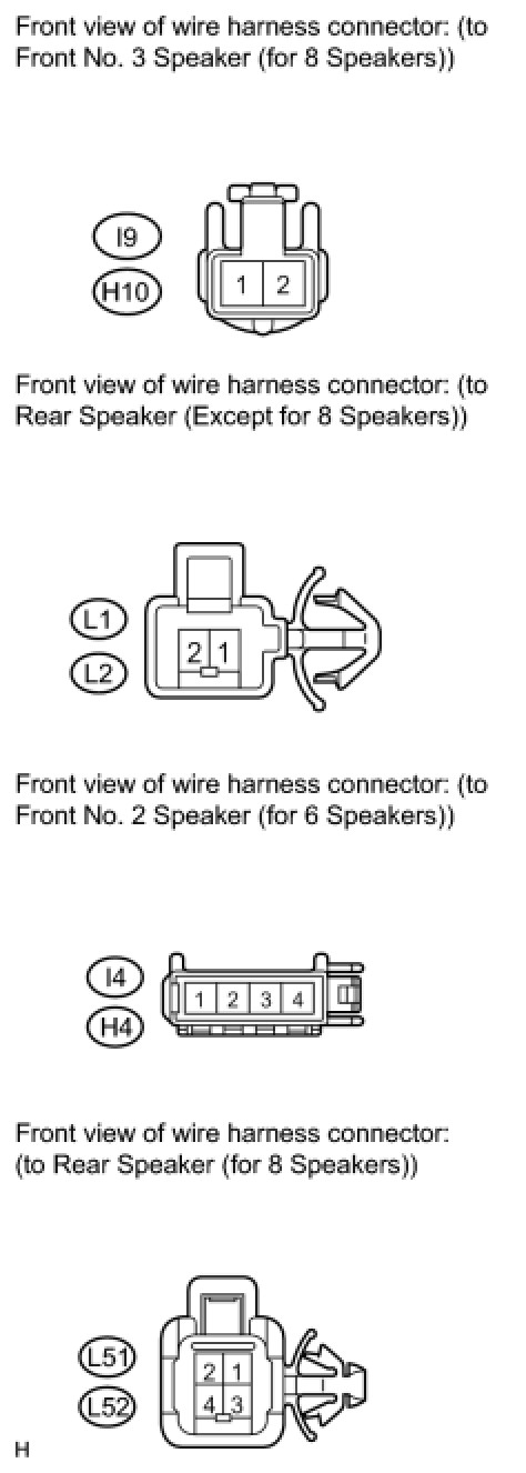 Measure the resistance between each of the front No. 1 speaker and front No. 2 speaker to check for an open circuit in the wire harness.