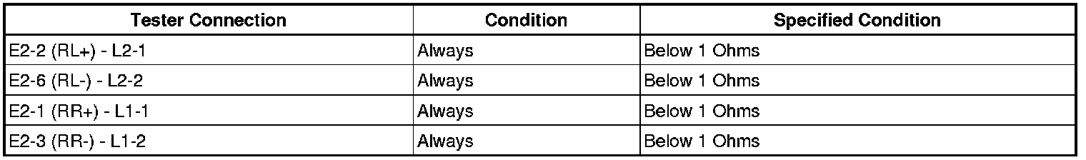Measure the resistance between each of the rear speakers and the radio receiver to check for an open circuit in the wire harness.