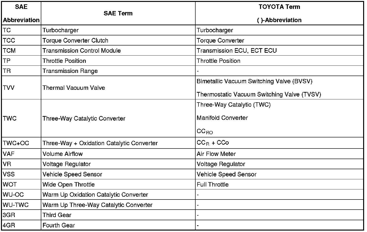 INTRODUCTION: TERMS: GLOSSARY OF SAE AND TOYOTA TERMS