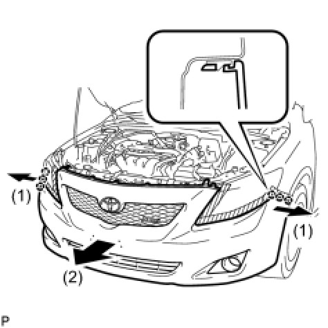(g) Disengage the 6 claws and remove the front bumper assembly as shown in the illustration.