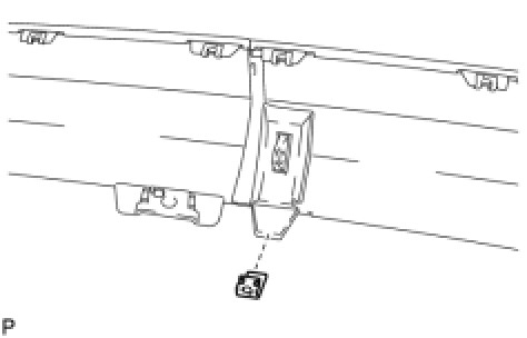 (b) Disengage the 2 claws and remove the rear upper bumper retainer LH.