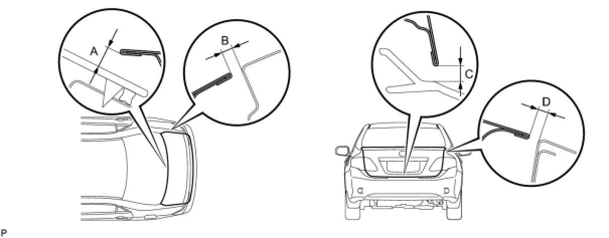 (a) Check that the clearance measurements of areas A through D are within each standard range.