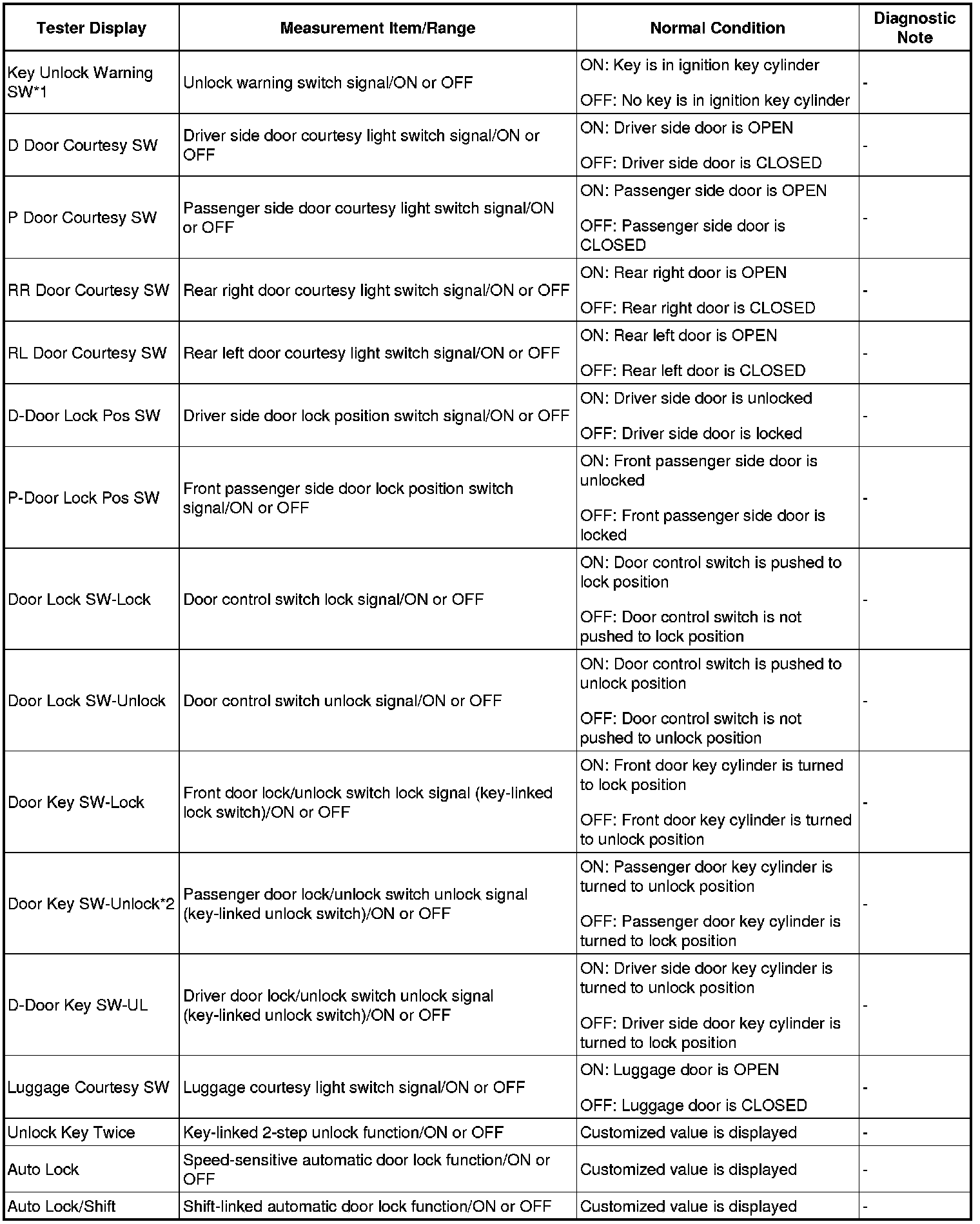 DOOR LOCK: POWER DOOR LOCK CONTROL SYSTEM: DATA LIST / ACTIVE TEST
