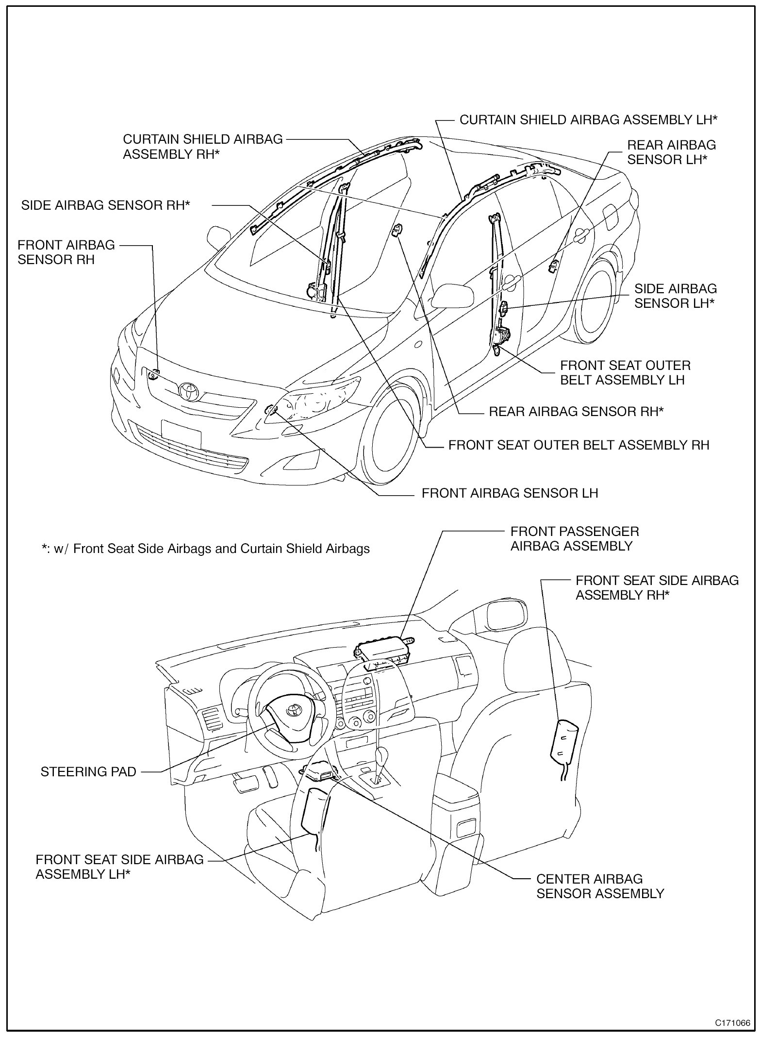 3. Do not allow the front airbag sensors, side airbag sensors, rear airbag sensors or seat position sensor to become heated to high temperatures.