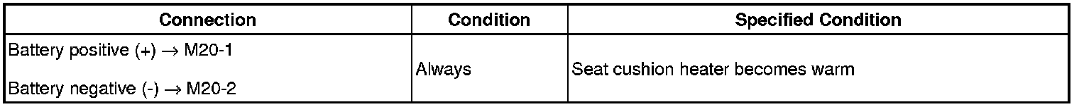 NOTE: Immediately after confirming that the seat heater is functioning normally, remove the battery leads. Failing to do so may cause the seat heater to overheat.