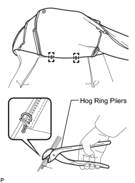 (b) Using hog ring pliers, install the rear seat cushion cover sub-assembly with 27 new hog rings.