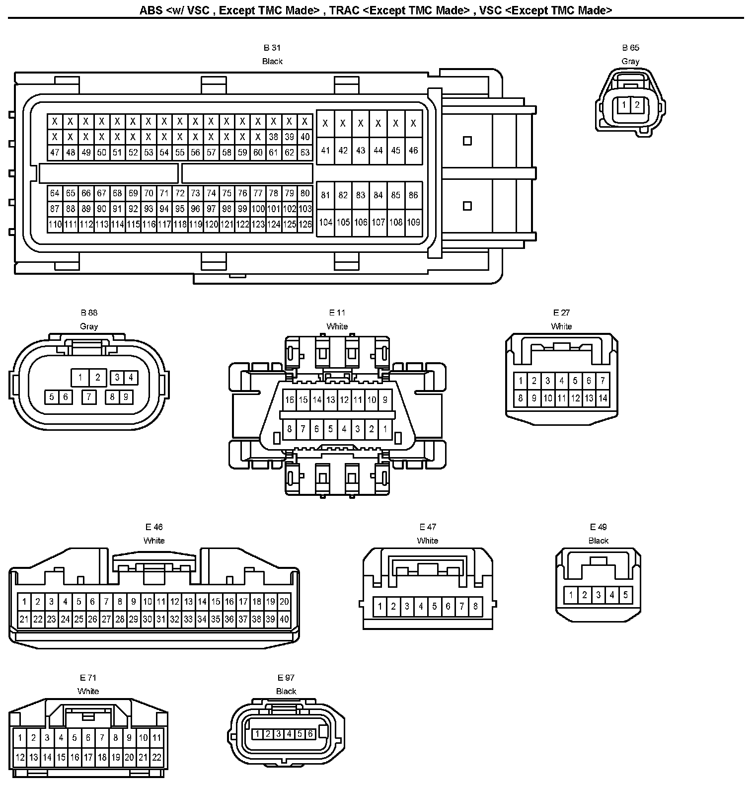 ABS (w/ VSC, Except TMC Made), TRAC (Except TMC Made), VSC (Except TMC Made)