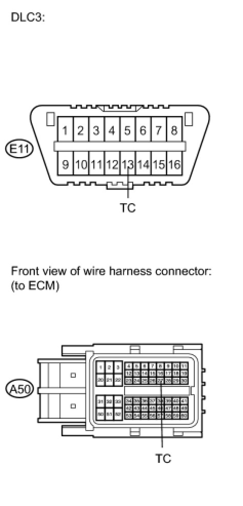 3. CHECK HARNESS AND CONNECTOR (TC of DLC3 - ECM)