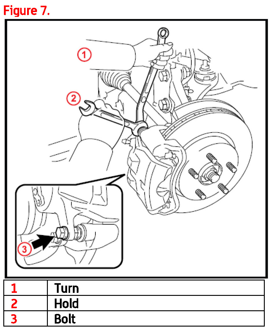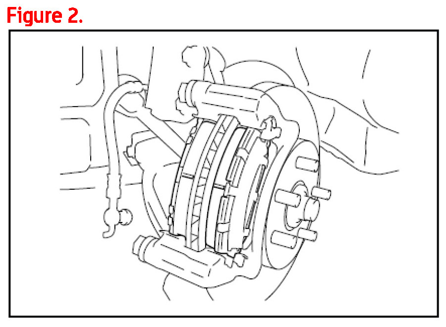 3. Remove the brake caliper assembly and support it to prevent damage to the flexible line.