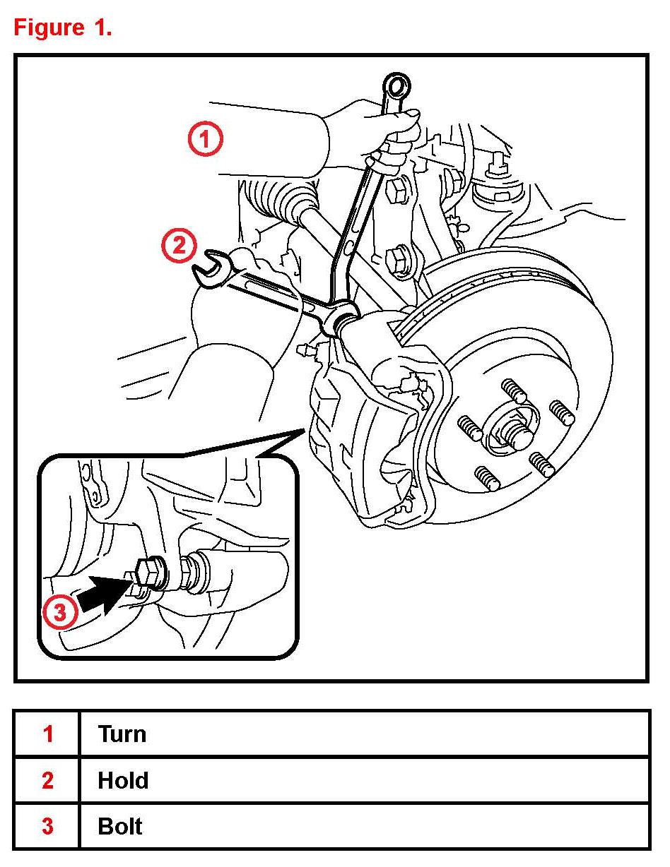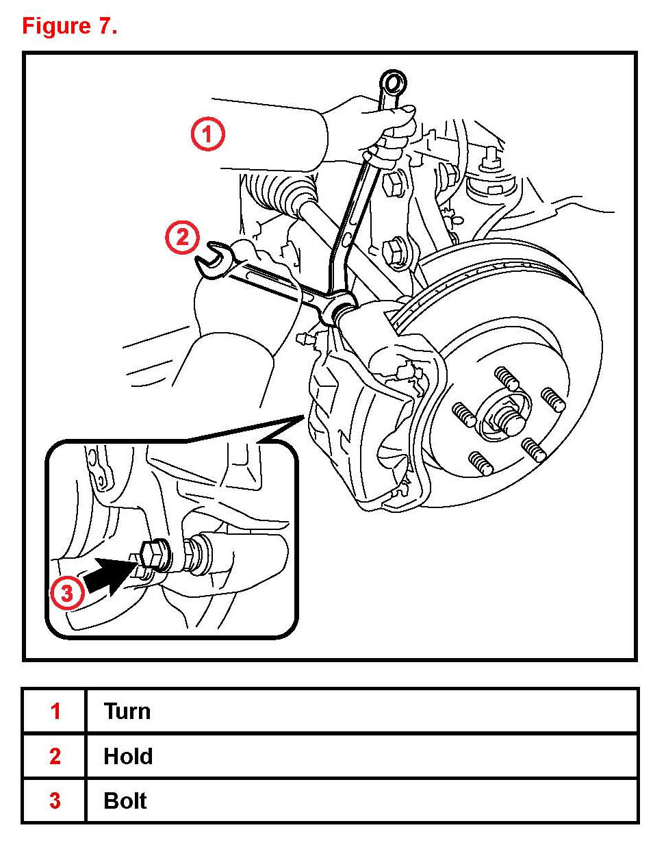 3. Remove the brake caliper assembly and support it to prevent damage to the flexible line.
