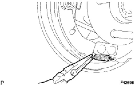 (b) Using needle-nose pliers, install the tension spring to the rear brake shoe.