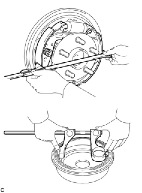 (c) Using SST, install the rear brake shoe, pin, shoe hold down spring and shoe hold down spring cup.