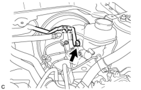 (c) Remove the 2 nuts, brake tube way and brake master cylinder sub-assembly.