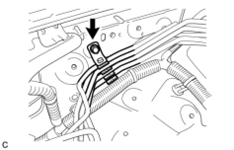 (c) Remove the 2 bolts, clamp and the windshield washer jar assembly from the body.