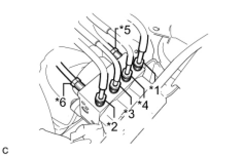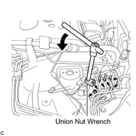 (c) Using a union nut wrench (10 mm), disconnect the 6 brake lines from the actuator assembly.