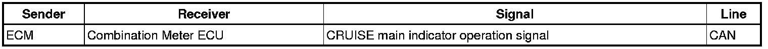 - The ECM illuminates the combination meter's CRUISE main indicator light when it receives a cruise control main switch ON signal.