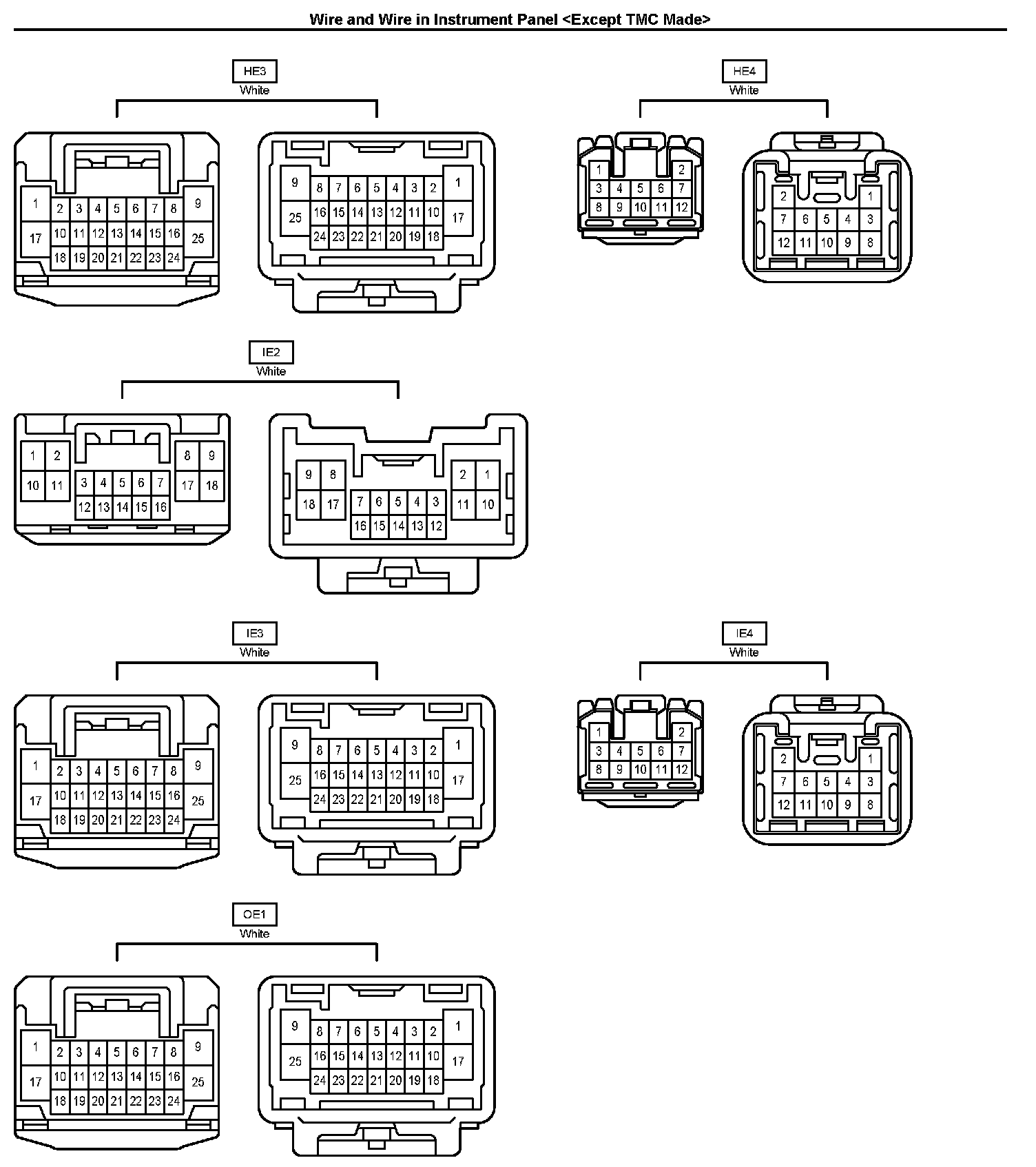 Wire and Wire In Instrument Panel (Except TMC Made)